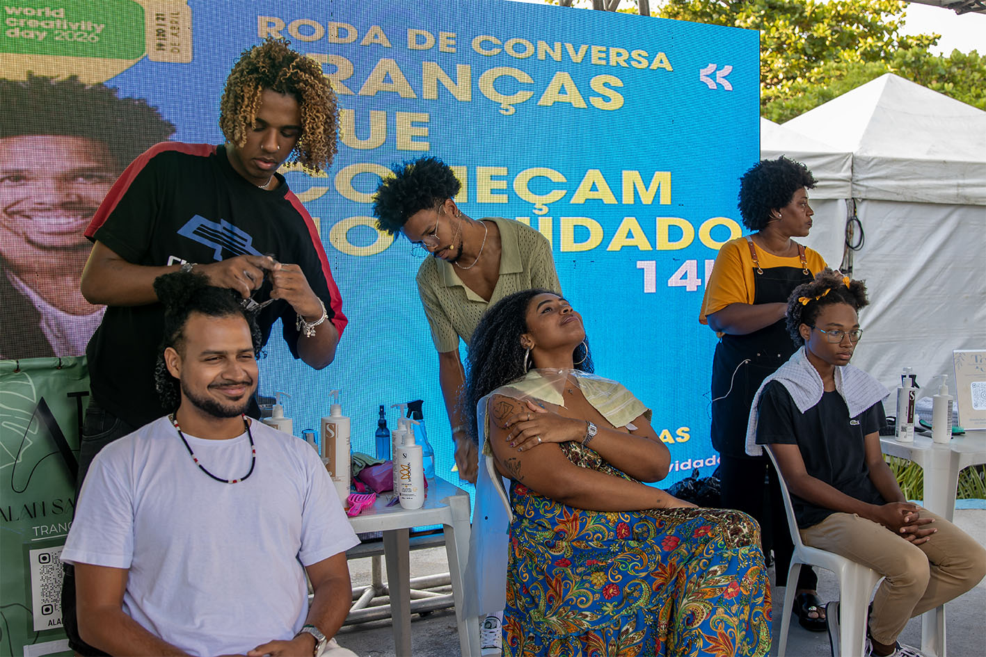 Já no período da tarde, o público pode participar de uma roda de conversa com Alan Santos, que teve como tema: “Tranças que Começam no Cuidado”.