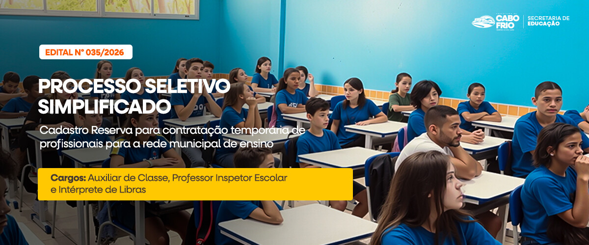 A Prefeitura de Saquarema, por meio da Secretaria Municipal de Educação, Cultura, Inclusão, Ciência e Tecnologia, faz saber aos interessados que, nos termos do art. 37, inciso IX da Constituição Federal e da Lei no 2.847, de 31 de março de 2026, e demais instrumentos legais, mediante as condições estabelecidas neste Edital, torna público a […]