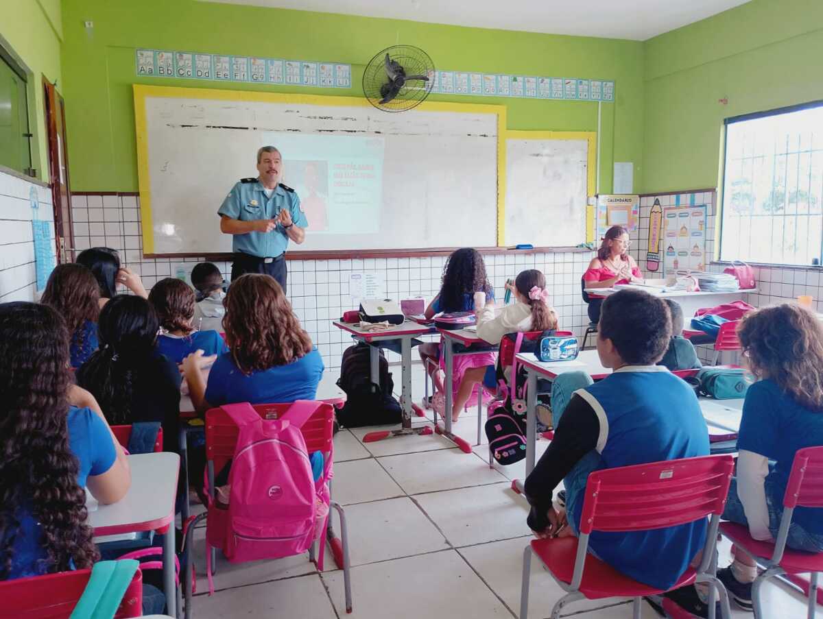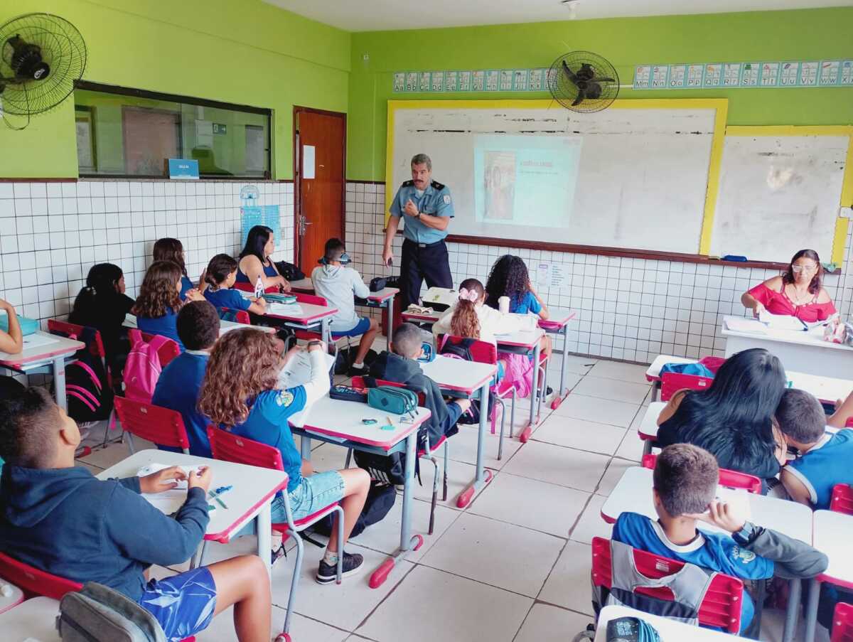 As escolas da rede municipal de ensino de São Pedro da Aldeia fortalecem ações de prevenção e promovem a formação cidadã de crianças e adolescentes com o Programa Educacional de Resistência às Drogas e à Violência (PROERD). No primeiro semestre deste ano, a iniciativa está atendendo turmas do 5º ano do Ensino Fundamental. As atividades acontecem na Escola Municipal Quilombola Dona Rosa Rosa Geralda da Silveira, no bairro Botafogo, e na Escola Municipal Flonete Alexandrino da Silva, no Poço Fundo.