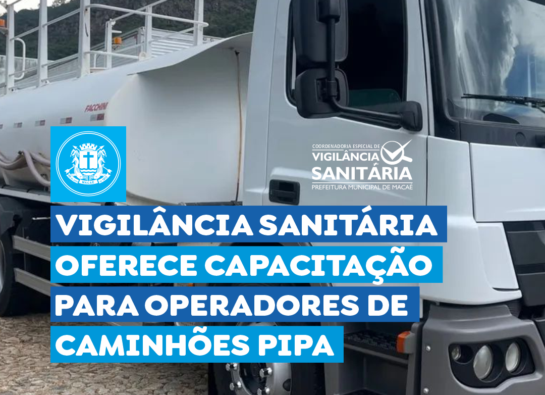 A Coordenadoria Especial de Vigilância Sanitária (Covisa) está com inscrições abertas para a capacitação voltada aos responsáveis e motoristas (operadores) das empresas que possuem veículos transportadores e fornecedores de água potável (caminhões-pipa). A capacitação, que é obrigatória, tem como objetivo orientar os profissionais sobre as normas garantindo maior segurança e qualidade.